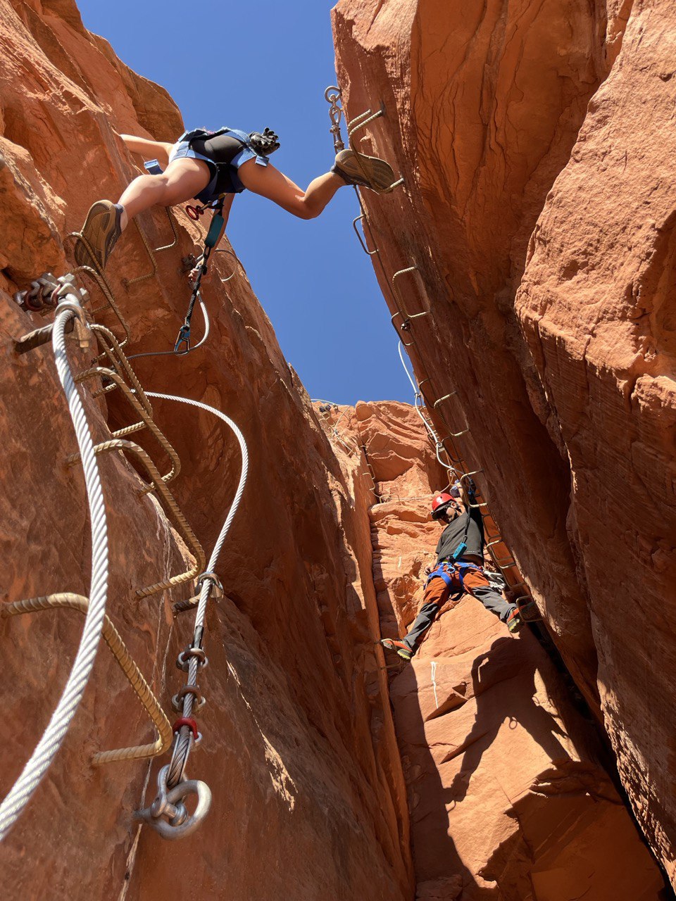 3. The Climb: You’ll shimmy along the rock face utilizing the Via Ferrata (Iron Way)—a series of metal rungs bolted solidly into the sandstone.